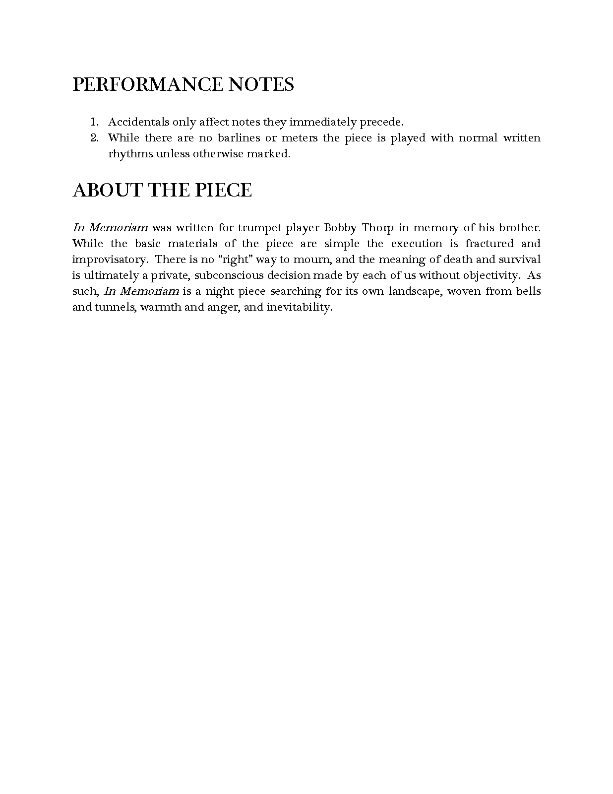 | Work Title | In Memoriam |