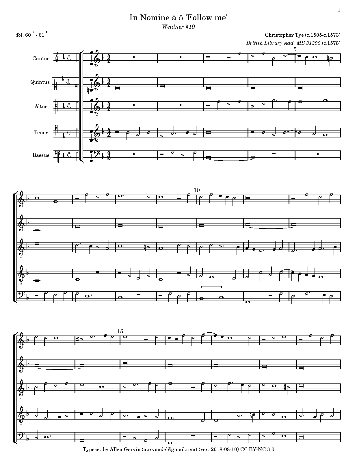 | Work Title | In Nomine à 5 'Follow me' |