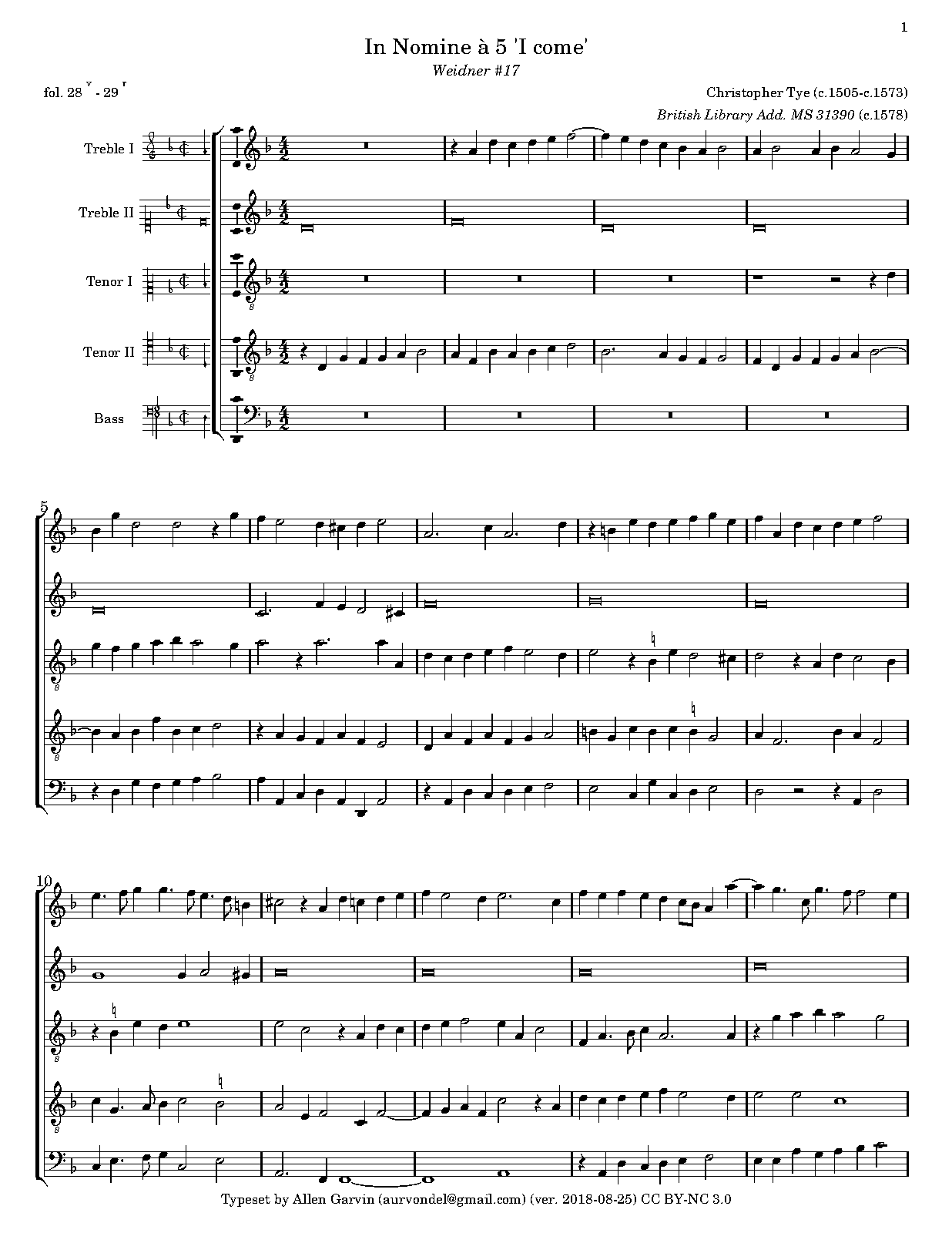 | Genre Categories | In nomines; For 5 instruments; Scores with open instrumentation; For 5 players |