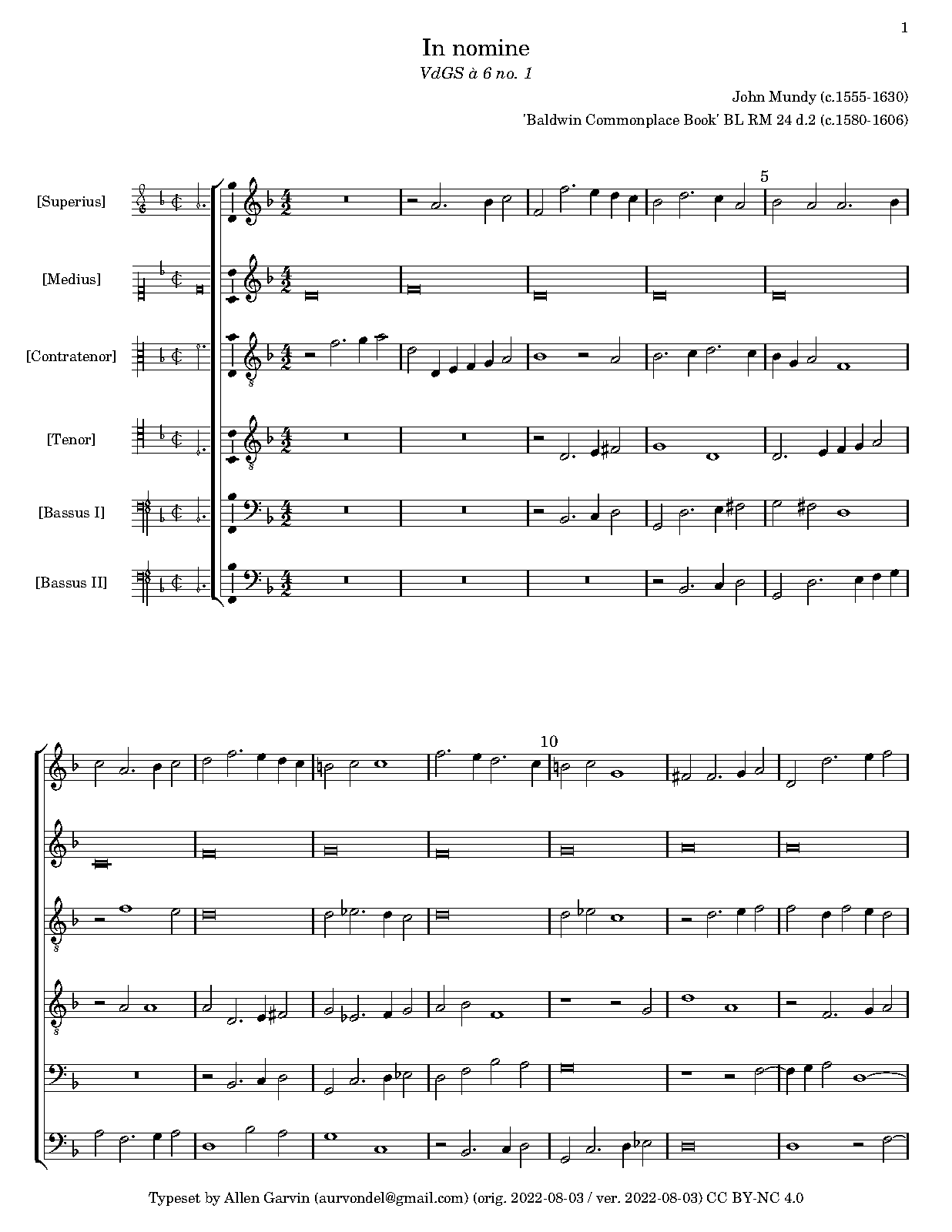 | Genre Categories | In nomines; For 2 treble, 2 tenor, 2 bass instruments; Scores with open instrumentation; |