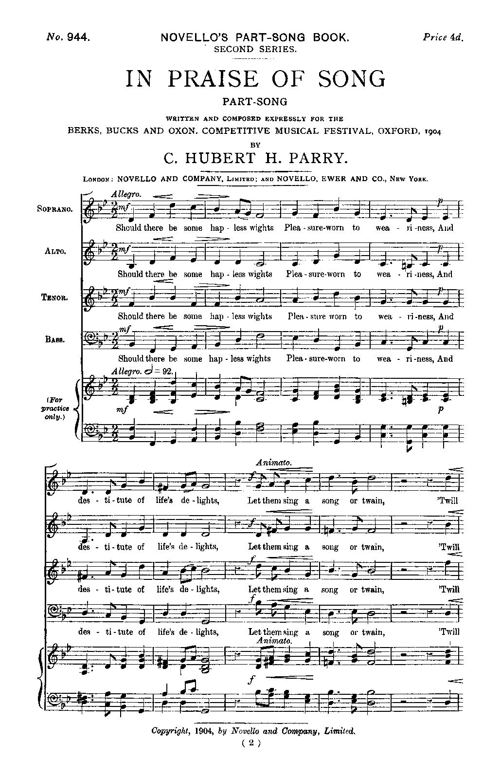 | Dedication | Written and Composed Expressly for the Berks, Bucks and Oxon. Competitive Musical Festival, Oxford, 1904 |