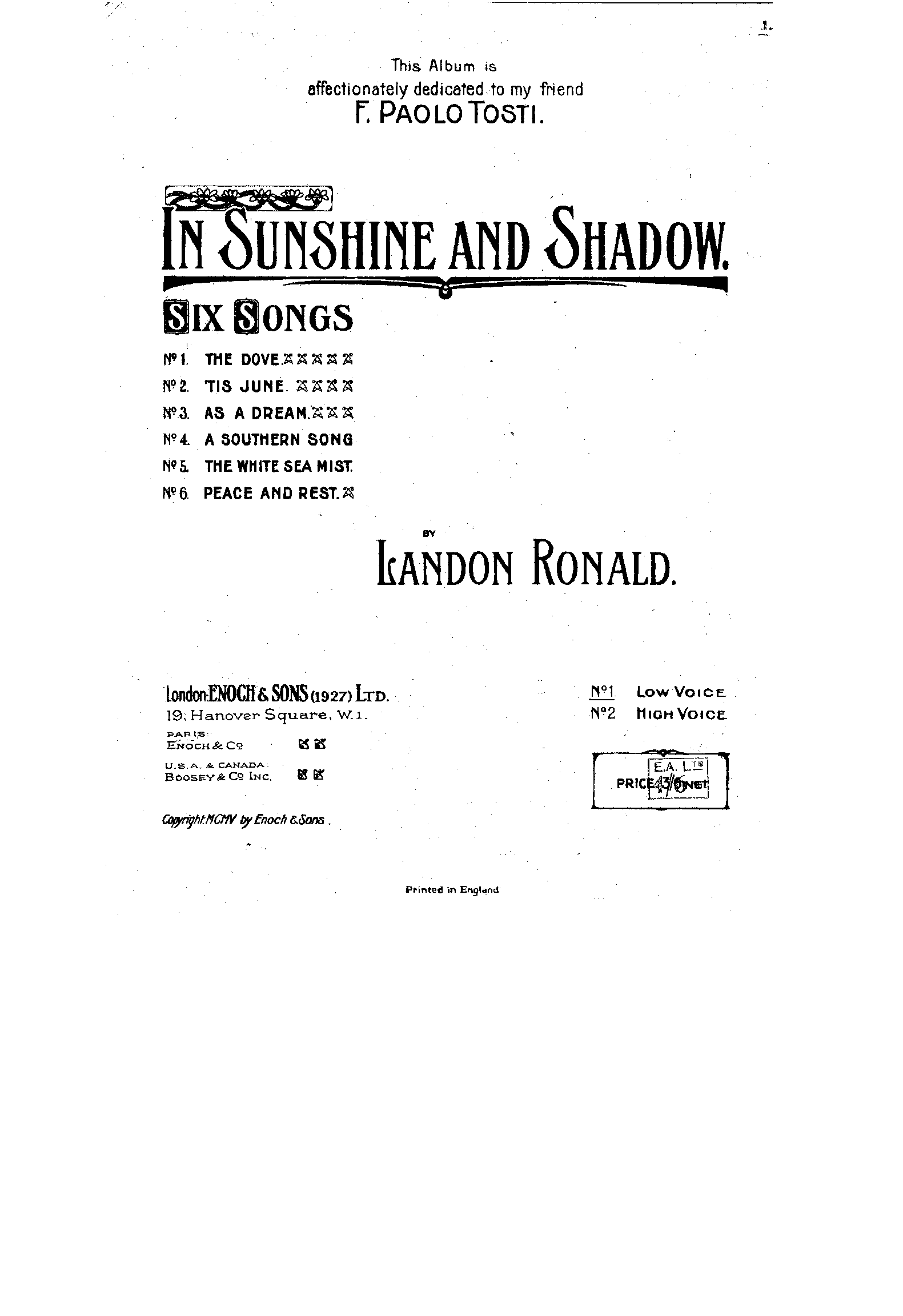 | Genre Categories | Songs; For voice, piano; For voices with keyboard; |