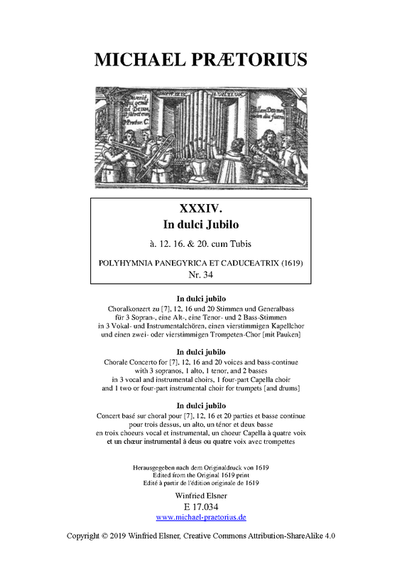 ⇒ 11 more: Concertatstimmen + Bassus Generalis - Score (01, 04-09, 21) • 1. Chorus (+ Bassus Generalis) - Score (01-04) • 1. Chorus - 4 Parts (01, 02, 03, 04) • 2. Chorus - Score (05-08) • 2. Chorus - 4 Parts (05, 06, 07, 08) • 3. Chorus - Score (09-12) • 3. Chorus - 4 Parts (09, 10, 11, 12) • Capella + Bassus Generalis - Score (13-16, 21) • Capella - 4 Parts (13, 14, 15, 16) • Tubae I. und I: Art - Score (17-20) • Bassus Generalis (21)
