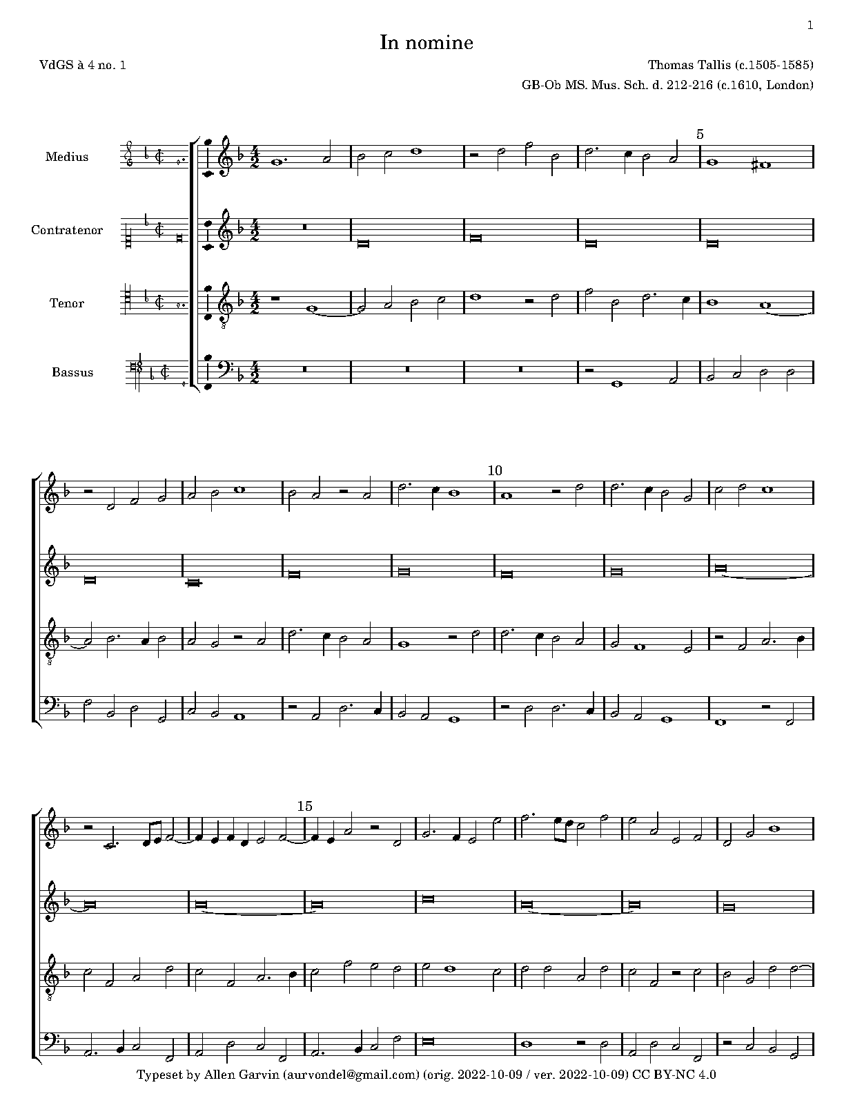 | Genre Categories | In nomines; For 2 treble, tenor, bass instruments; Scores with open instrumentation; |