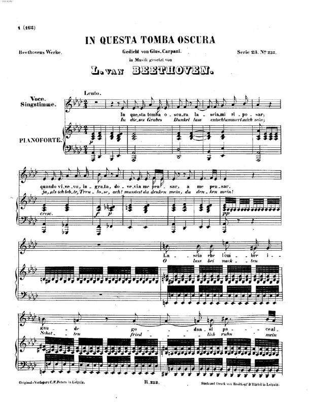 Ludwig van Beethovens Werke, Serie 23: Lieder und Gesänge mit Begleitung des Pianoforte, No.252 (pp.162-63) Leipzig: Breitkopf und Härtel, n.d.[n.d.[1864]]. Plate B.252.