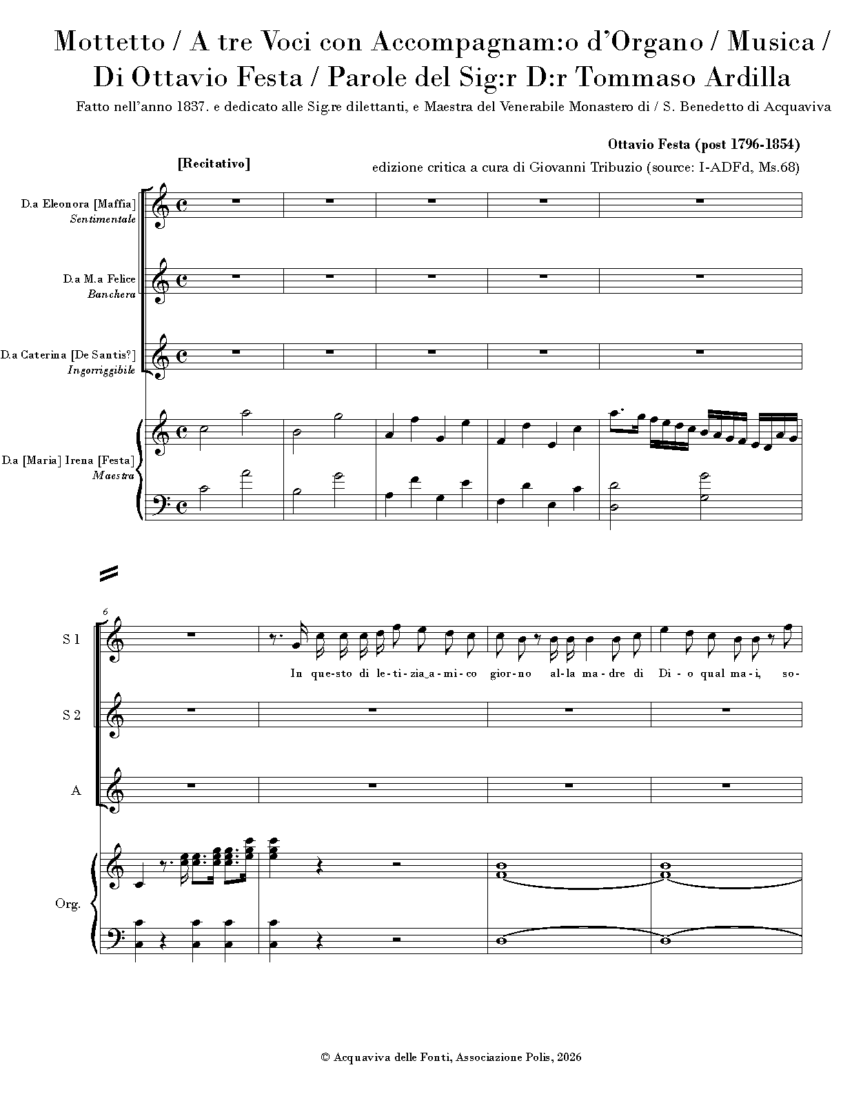 | Alternative. Title | Mottetto / A tre Voci con Accompagnam:o d'Organo / Musica / Di Ottavio Festa / Parole del Sig:r D:r Tommaso Ardilla |
