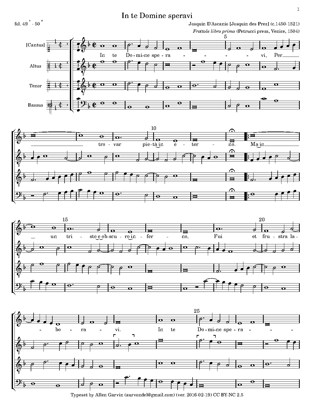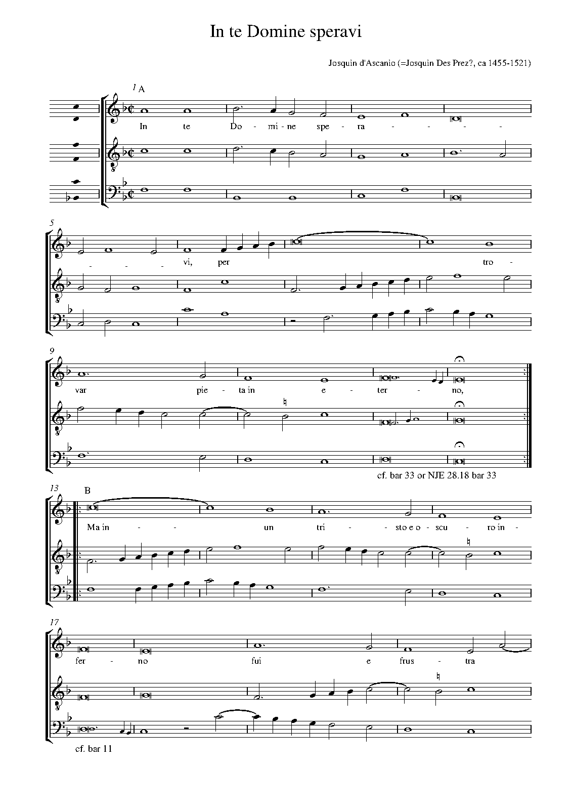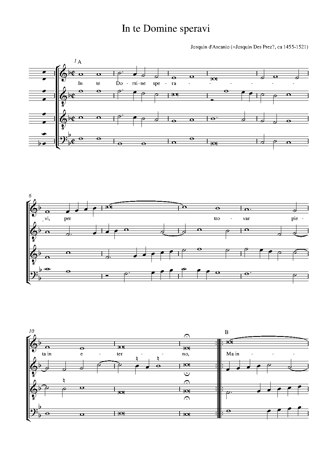 | Alternative. Title | In te Domine speravi non confundar / In te, Domine, speravi per trovar pietà in eterno |
