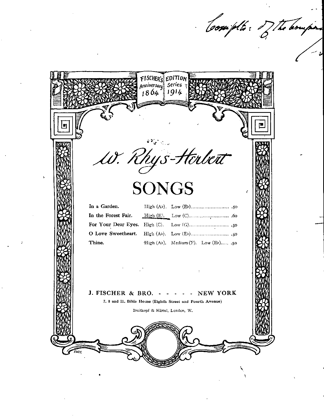 | First Publication. | 1914 – New York: J. Fischer & Bro. |