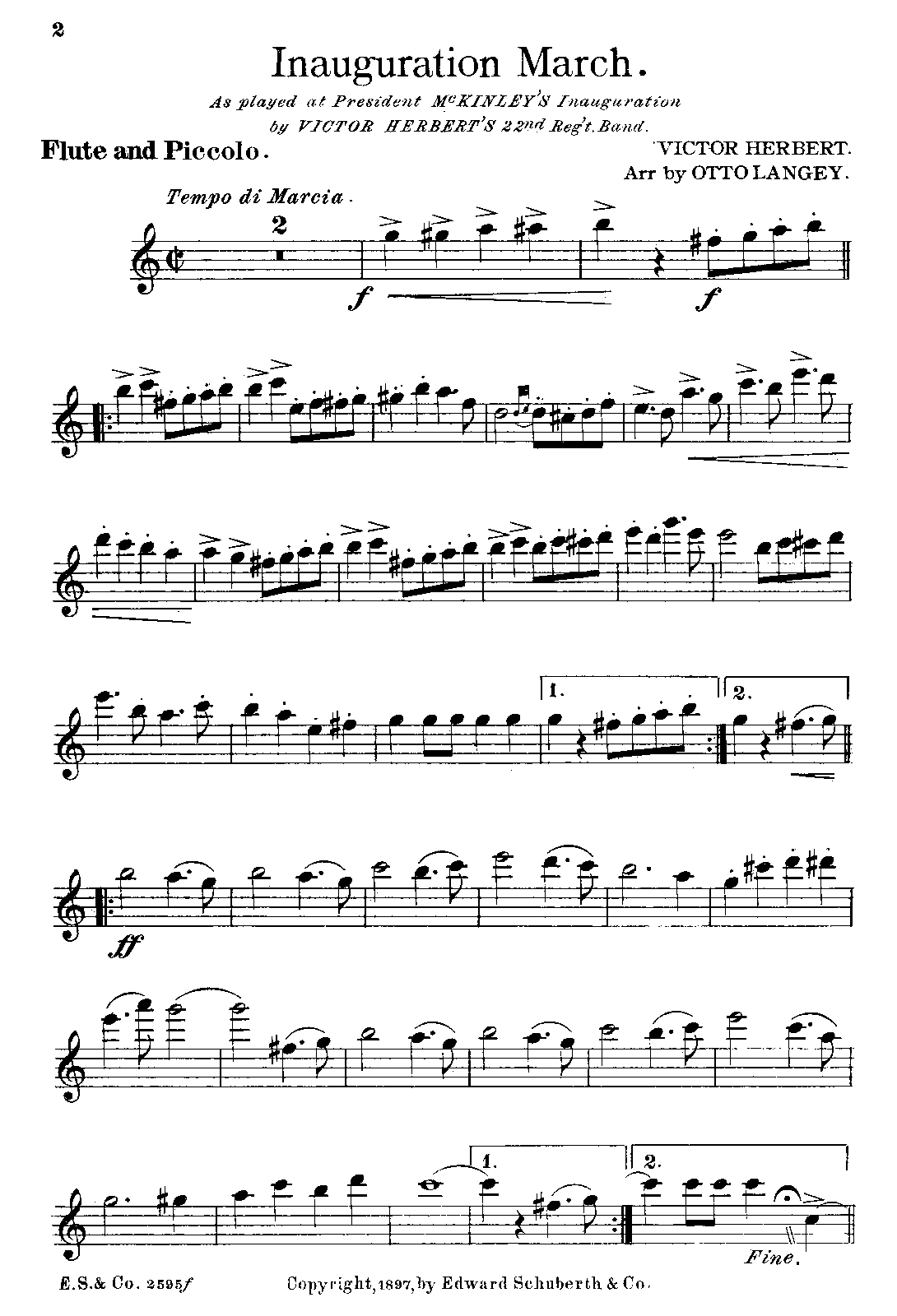 | Extra Information | "As played at President McKinley's Inauguration by Victor Herbert's 22nd Reg't Band." |