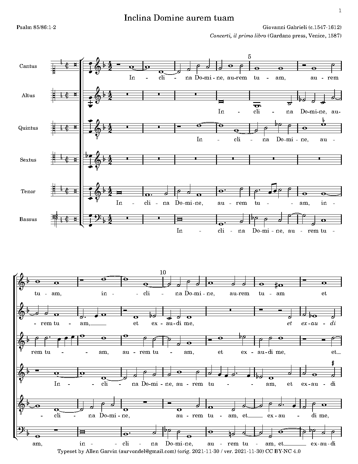 | First Publication | 1587 in Concerti (Venice: Angelo Gardano press) |