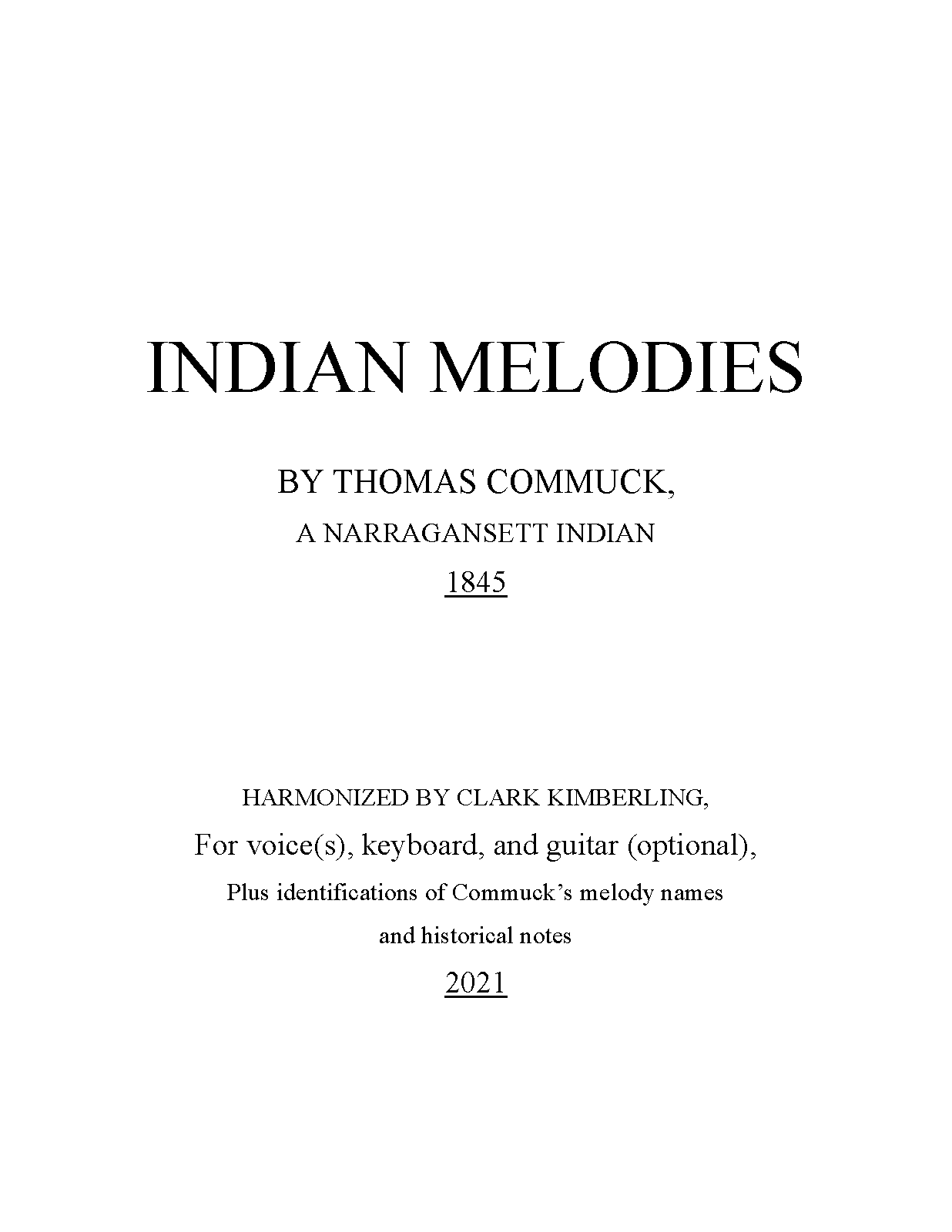 | Alternative. Title | Indian Melodies by Thomas Commuck, a Narragansett Indian. Harmonized by Thomas Hastings, Esq. |
