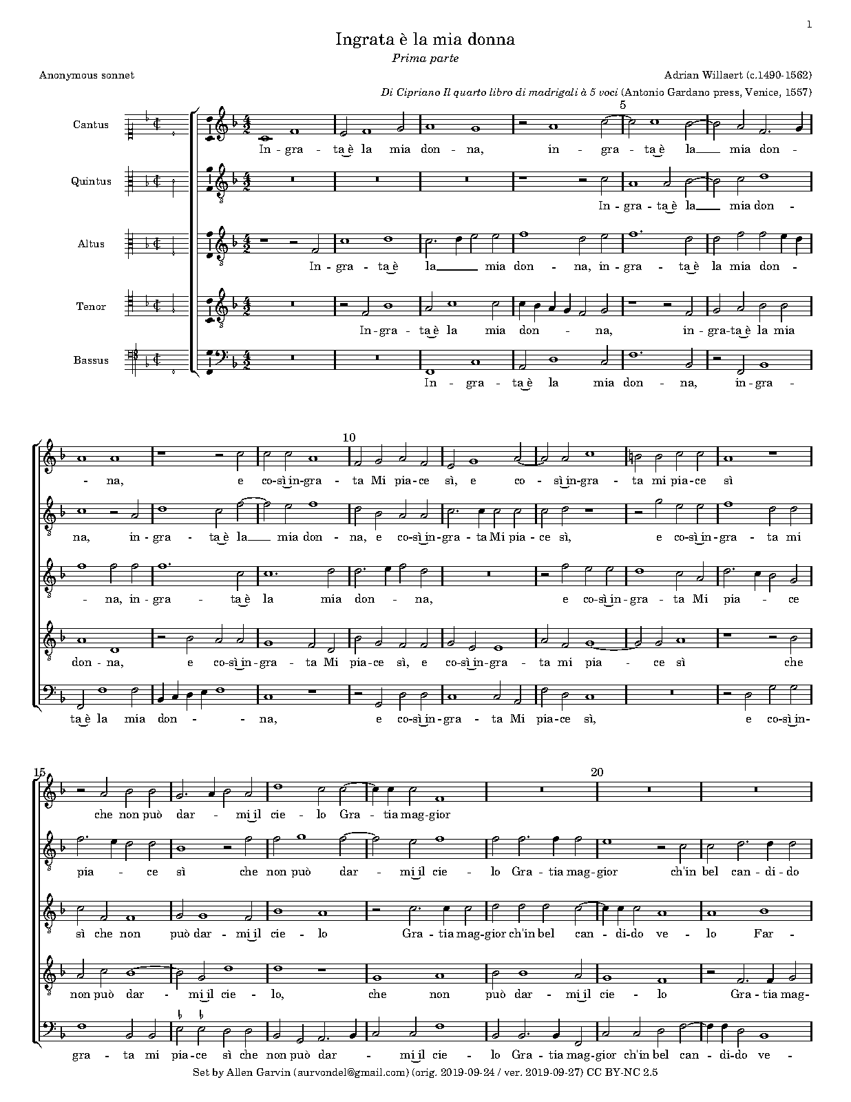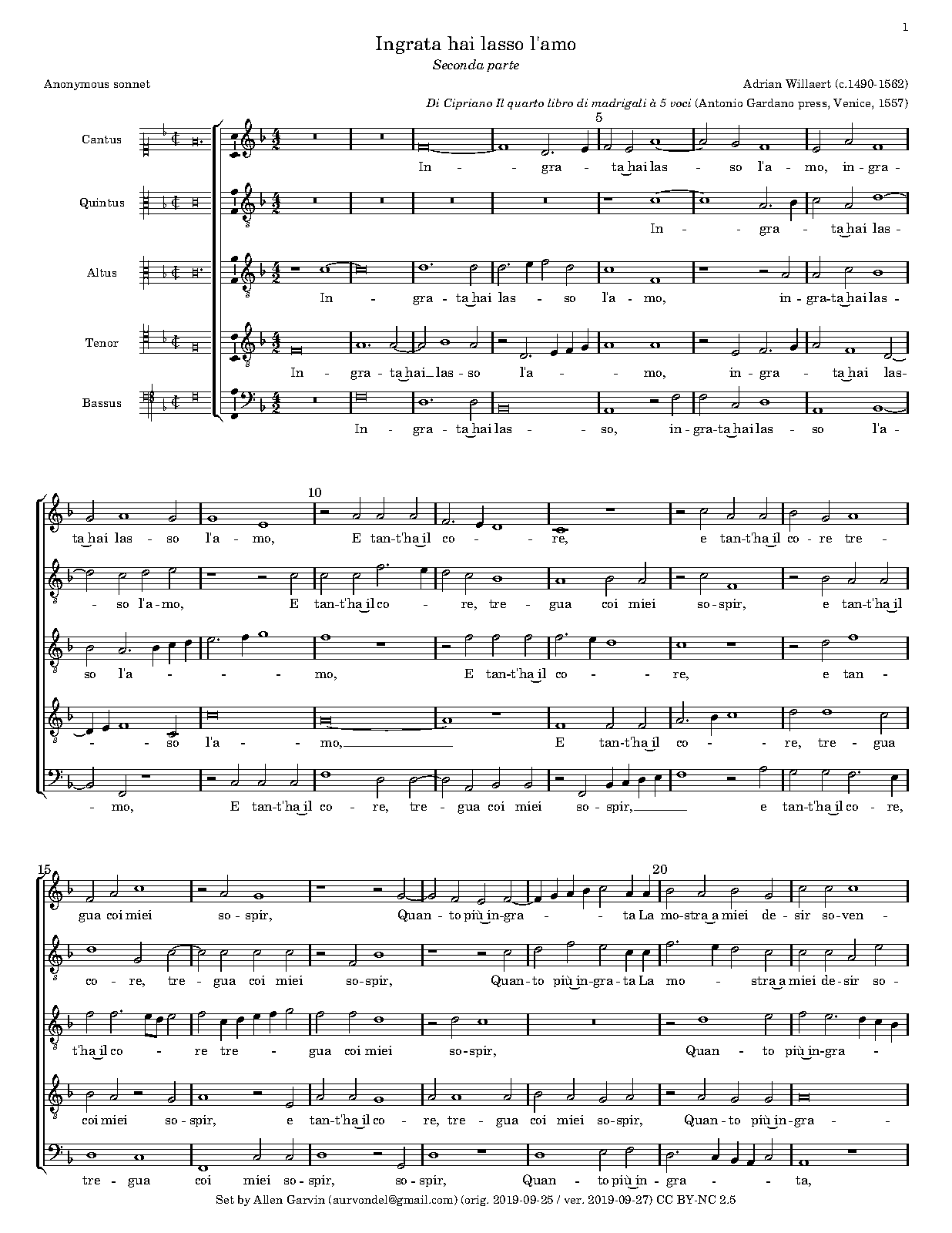 | First Publication | 1557 in Madrigali a 5 voci, Libro 4 (Rore, Cipriano de) (Venice: Antonio Gardano press) |
