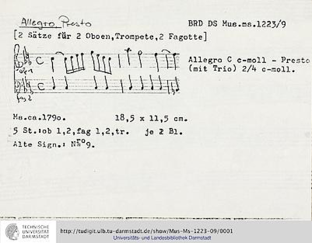 | Genre Categories | Pieces; For 2 oboes, 2 bassoons, trumpet; Scores featuring the oboe; |