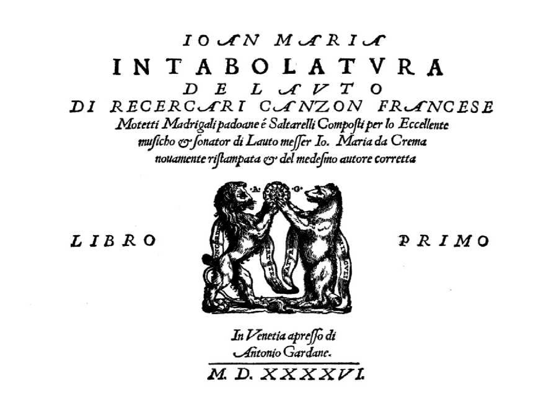 | Alternative. Title | Ioan Maria Intabolatvra de lavto di recercari canzon francese Motetti Madrigali padoane e Saltarelli Composti per lo Eccelente musicho & sonator di Lauto messer Io. Maria da Crema |