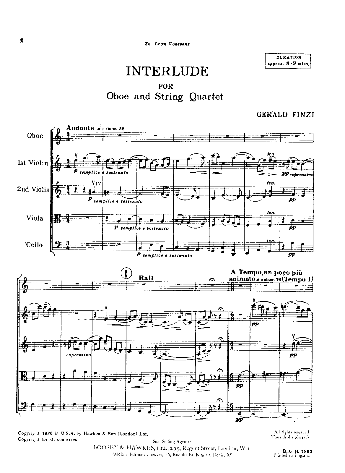 | First Publication. | 1936 – London: Boosey & Hawkes |