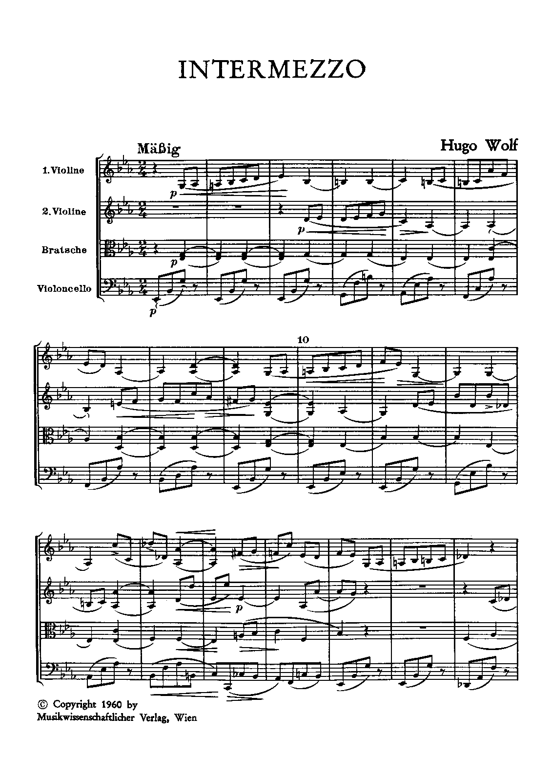| Genre Categories | Intermezzos; For 2 violins, viola, cello; Scores featuring the violin; |