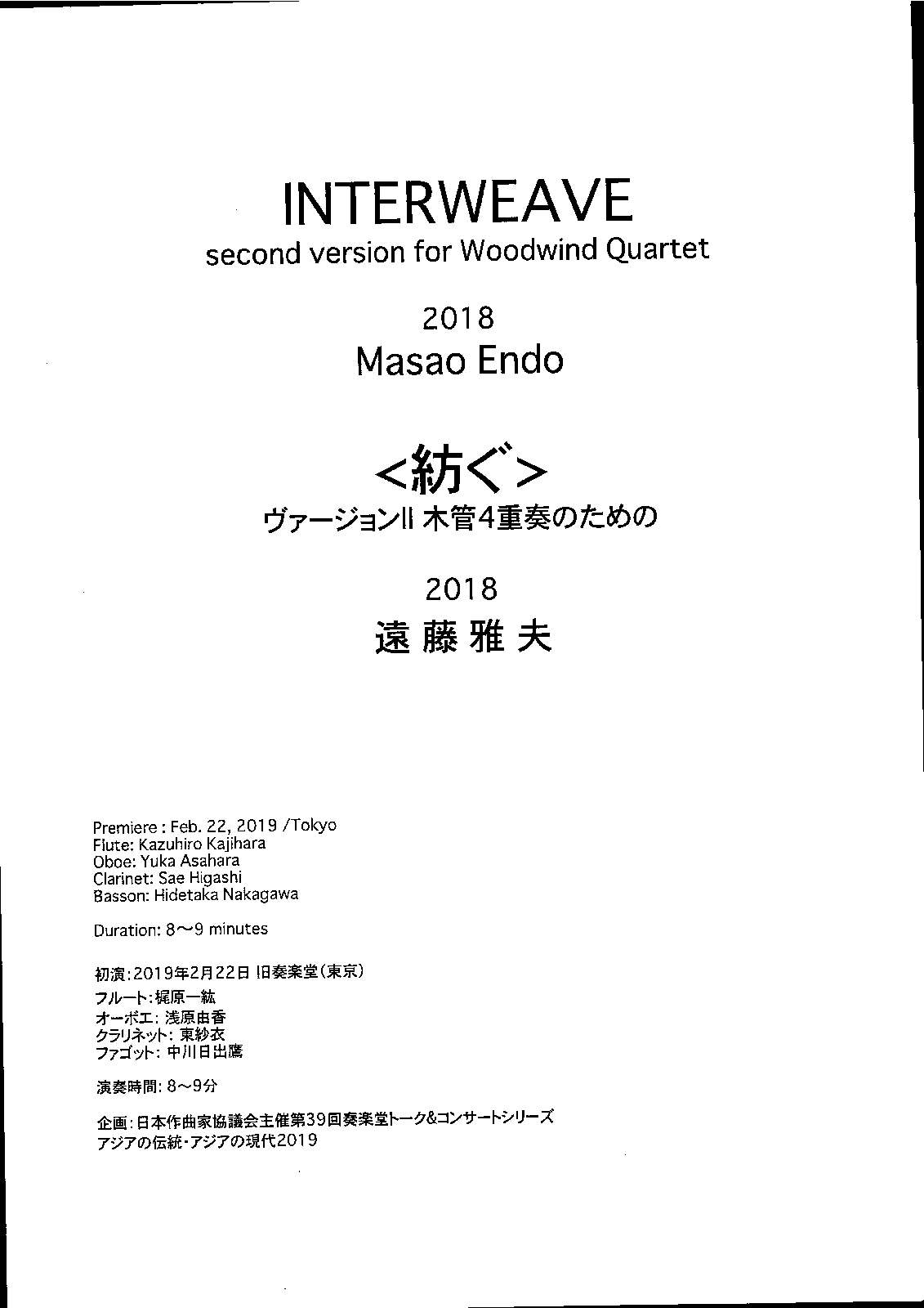 | Work Title | Interweave 2nd Version for Woodwind Quartet |