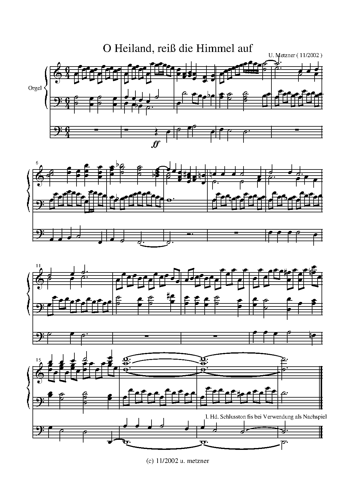 | Work Title | Intonation 'O Heiland reiss die Himmel auf' |