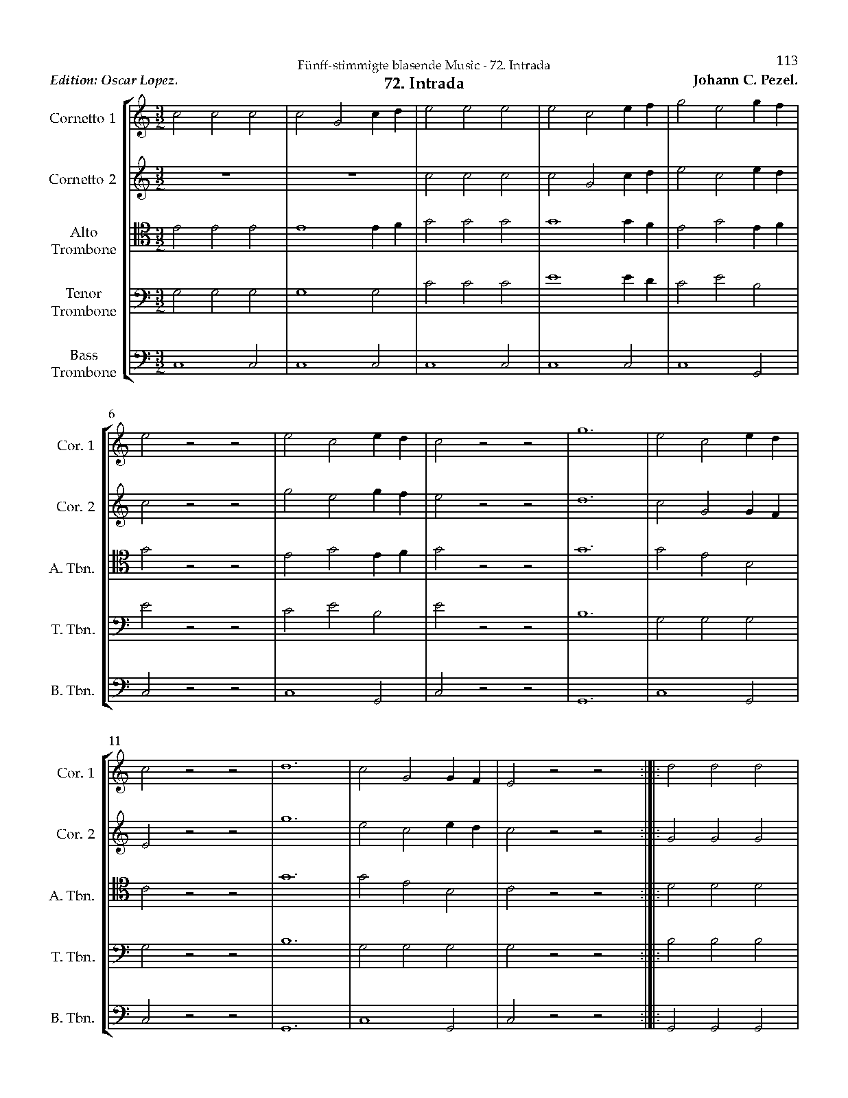 | First Publication. | 1685 in Fünfstimmige blasende Music (No.72) |