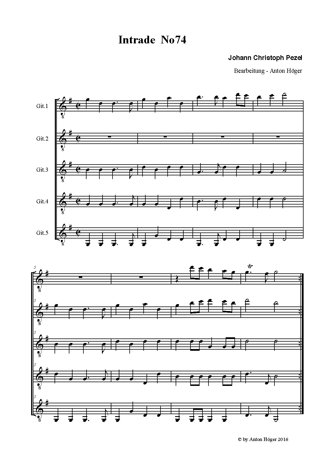 | First Publication | 1685 in Fünfstimmige blasende Music (No.74) |