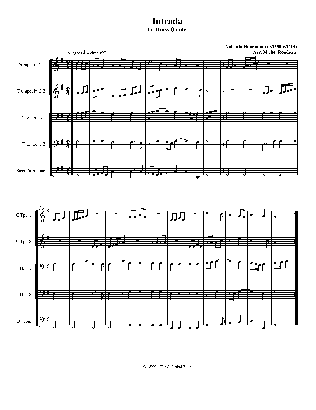 | Genre Categories | Intradas; For treble, alto, 2 tenor, bass instruments; Scores with open instrumentation; |
