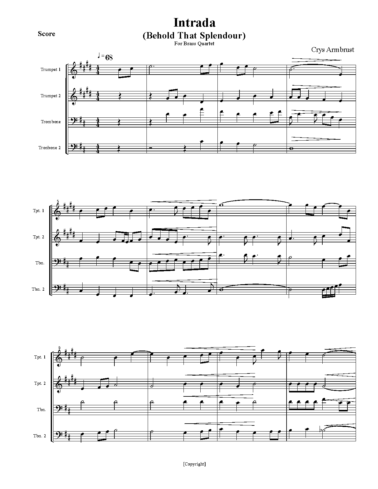 Intrada for Brass Quartet (Behold That Splendour)