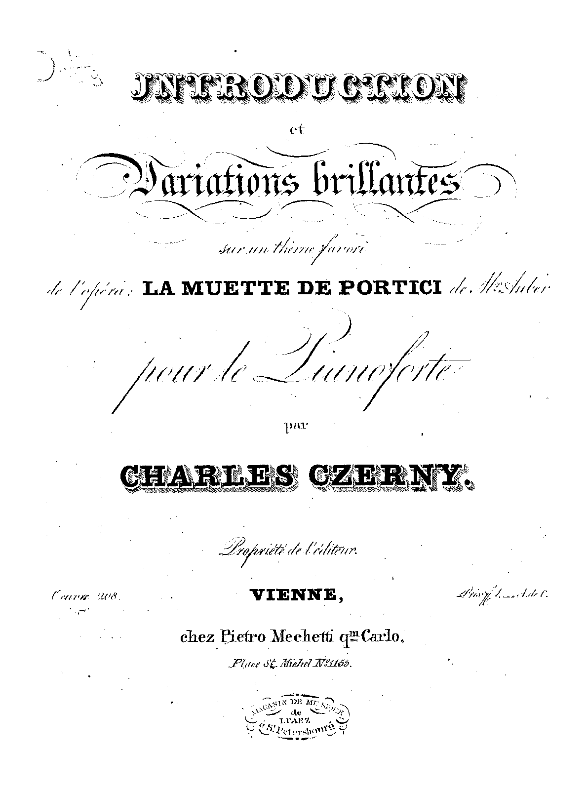 | Alternative. Title | Introduction et Variations brillantes sur un thème favori de l'opéra : La muette de Portici de Mr Auber |