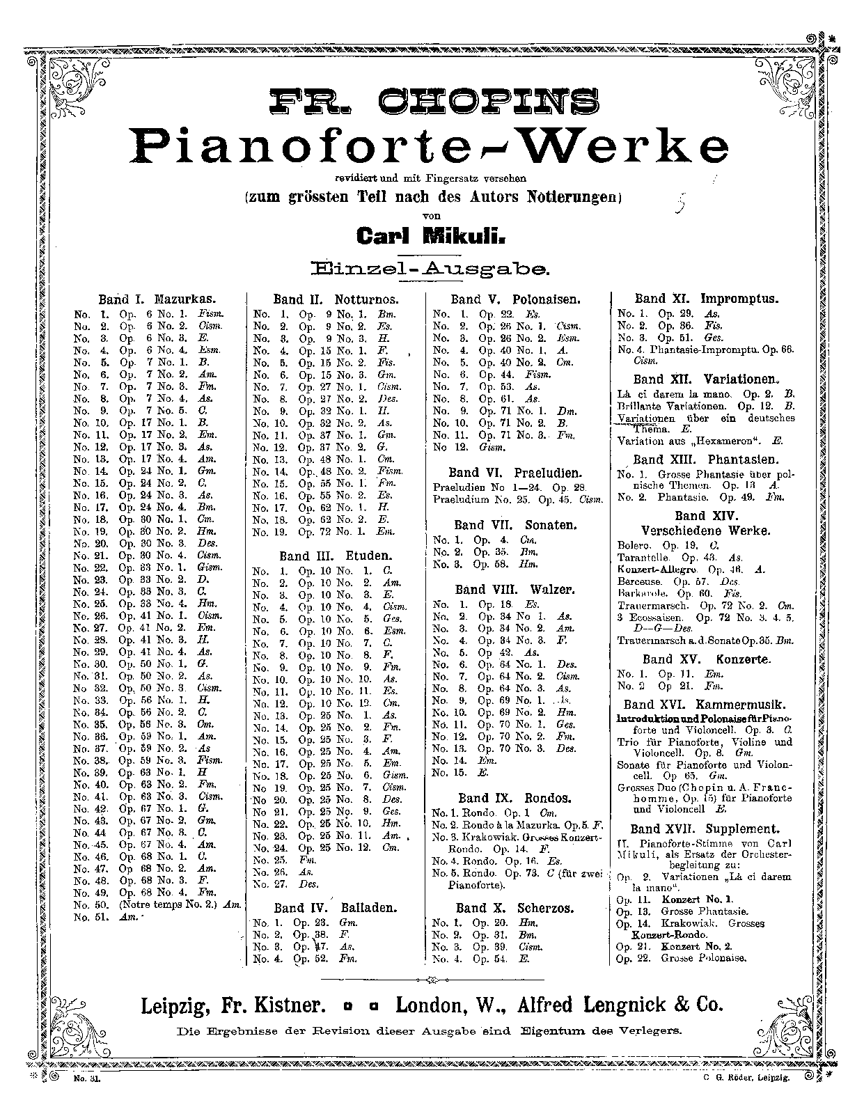 Publisher. Info. Friedrich Chopin's Werke. Band XIII