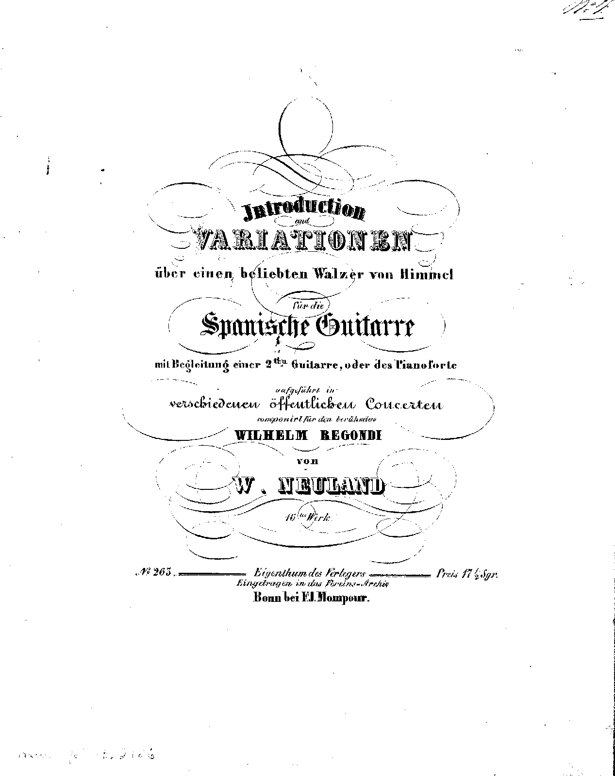 Introduction und Variationen über einen beliebten Walzer von Himmel für spanische Guitarre mit Begleitung einer 2ten Guitarre oder des Pianoforte