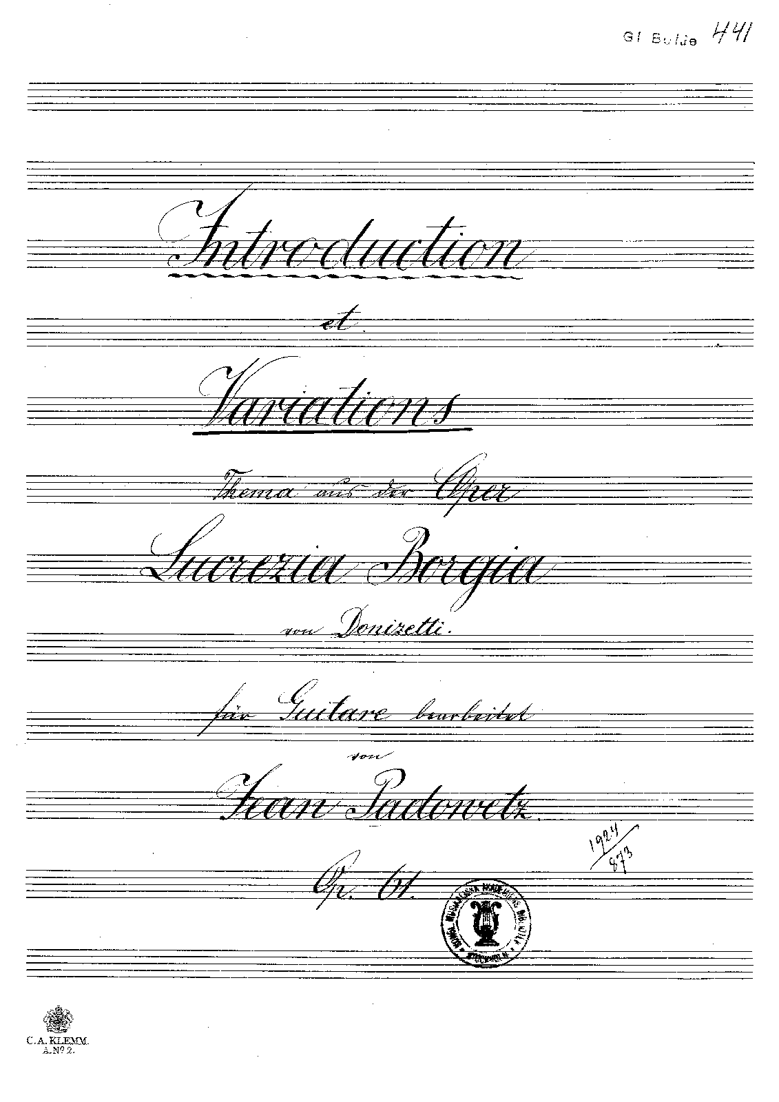 | Alternative. Title | Introduction et Variations über ein Thema aus der Oper Lucrezia Borgia von Donizetti |