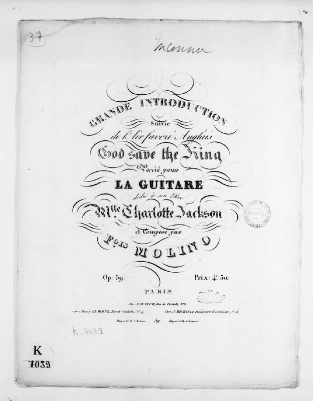 | Alternative. Title | Grande Introduction suivie de l'Air favori Anglais 'God save the King', Varié pour la Guitare |