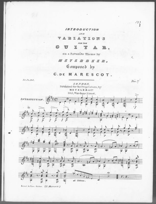 | Work Title | Introduction and Variations for the Guitar on a Favorite Theme of Meyerbeer |