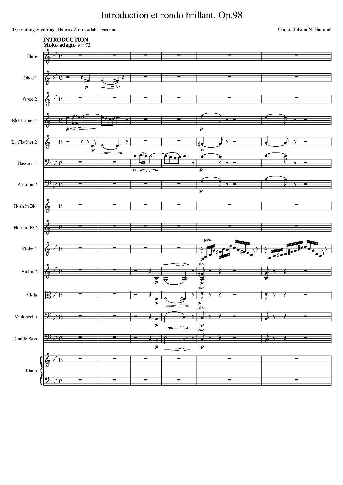 flute, 2 oboes, 2 clarinets, 2 bassoons 2 horns, 2 trumpets (B♭), timpani, strings