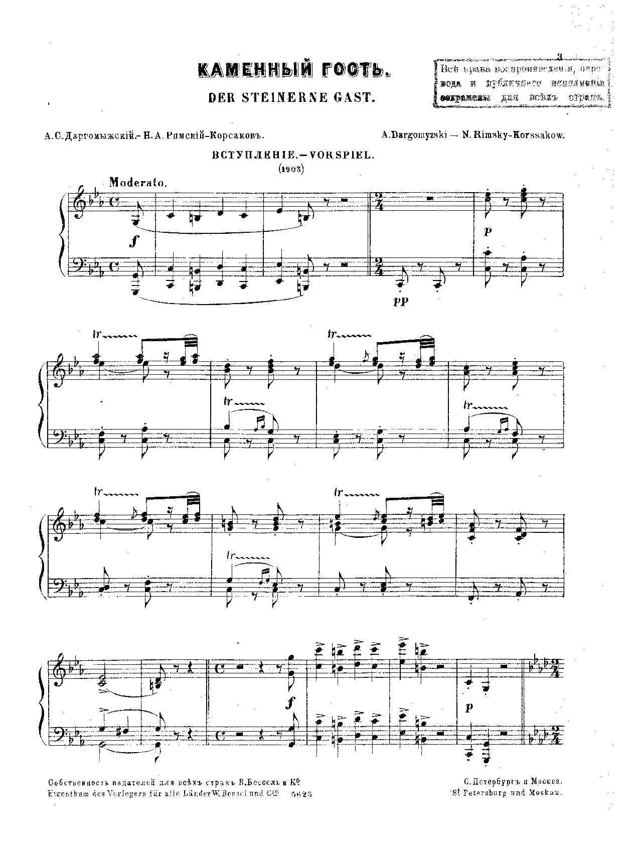 Based on themes by Aleksandr Dargomyzhsky. Rimsky-Korsakov eventually re-orchestrated the entire opera.