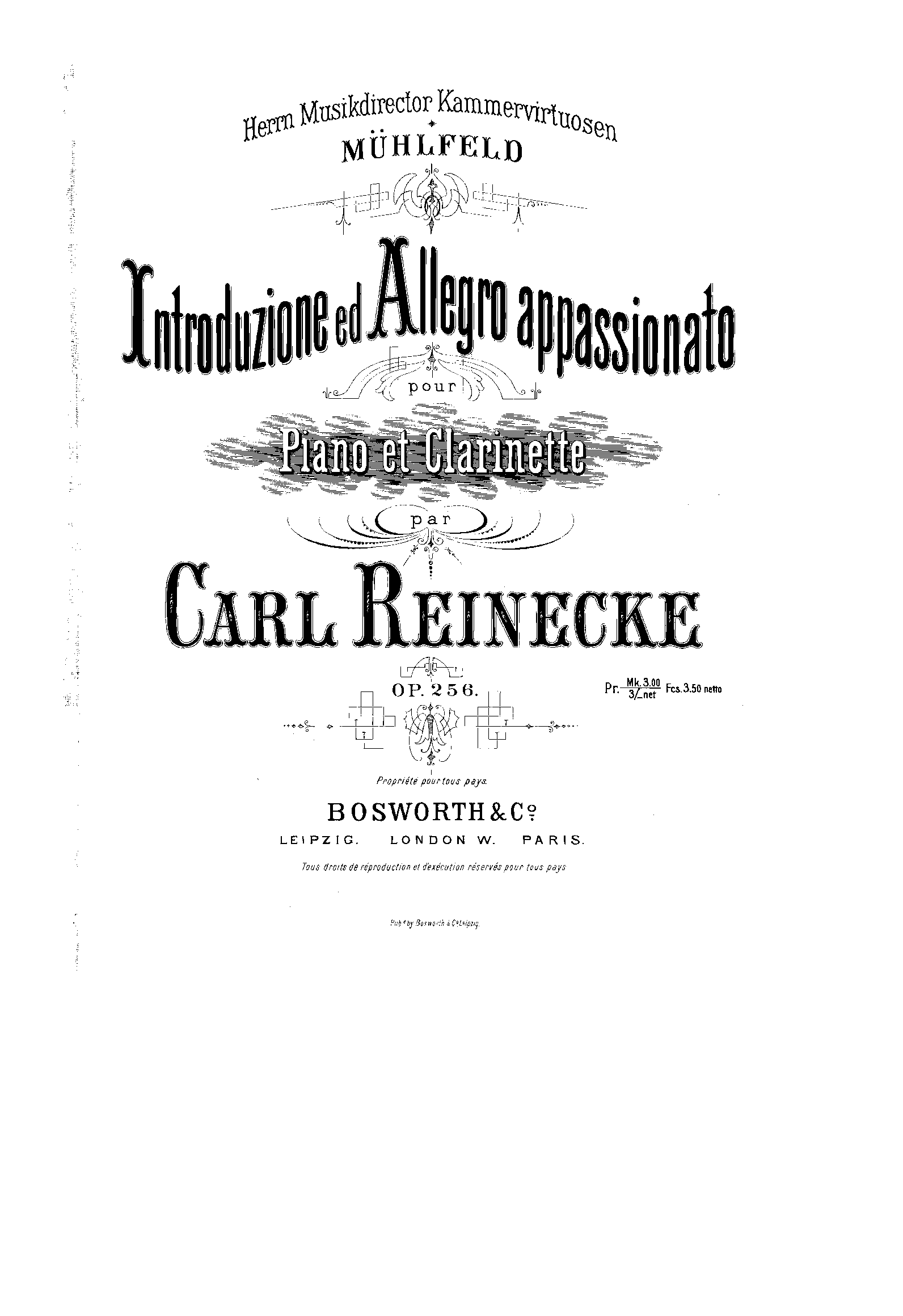 | Dedication | Herrn Musikdirektor Kammervirtuosen Mühlfeld Richard Mühlfeld |