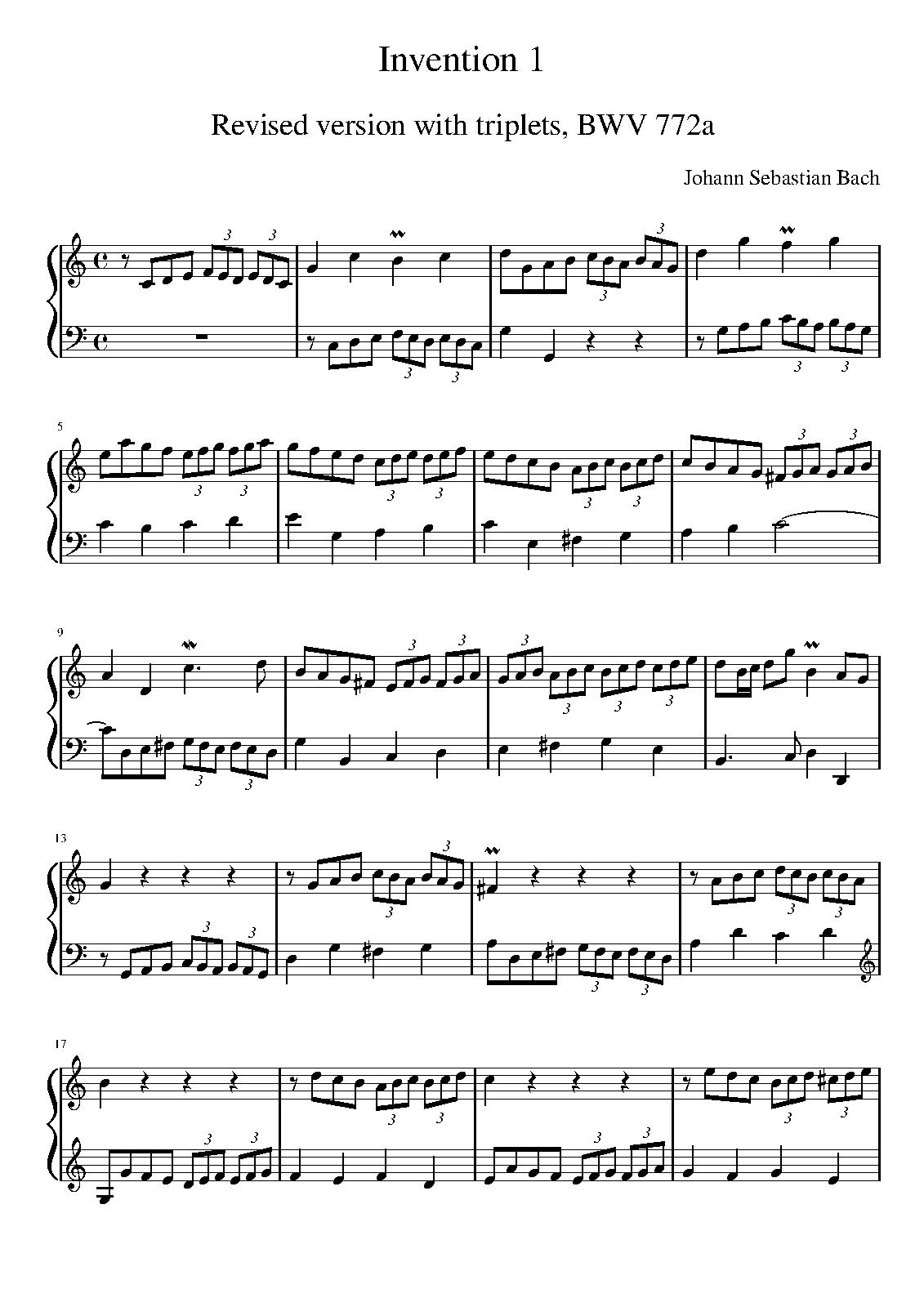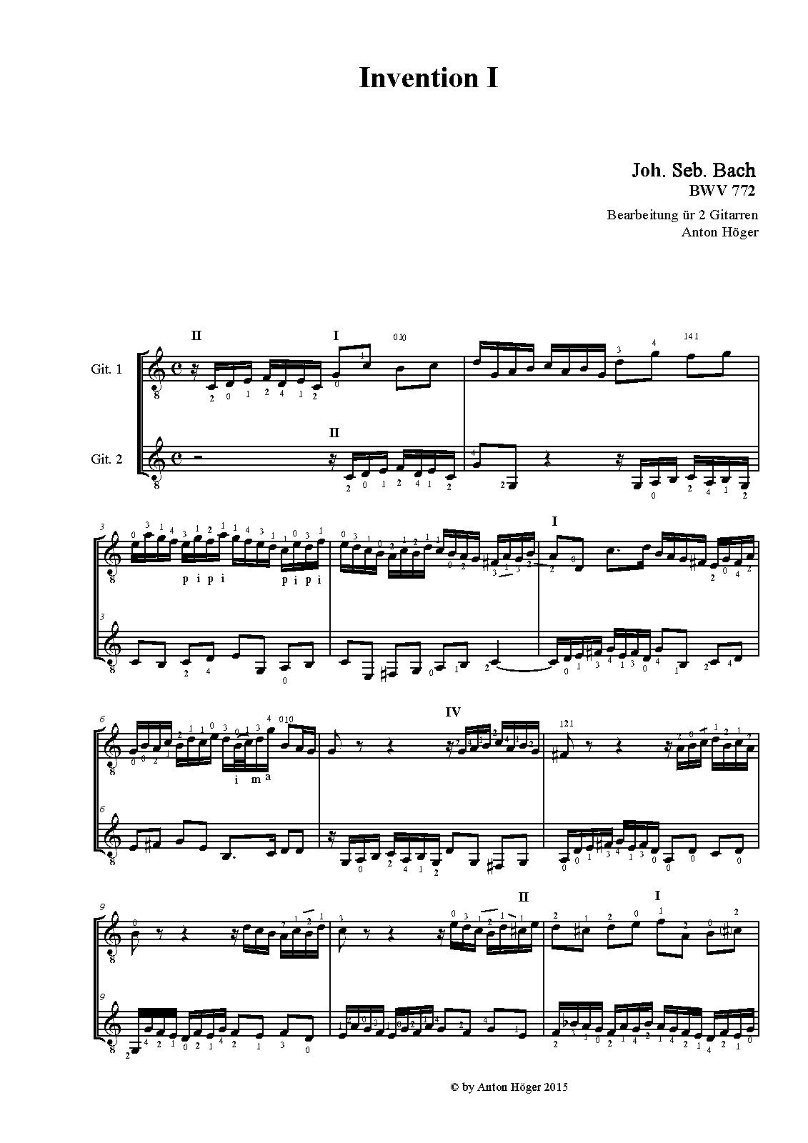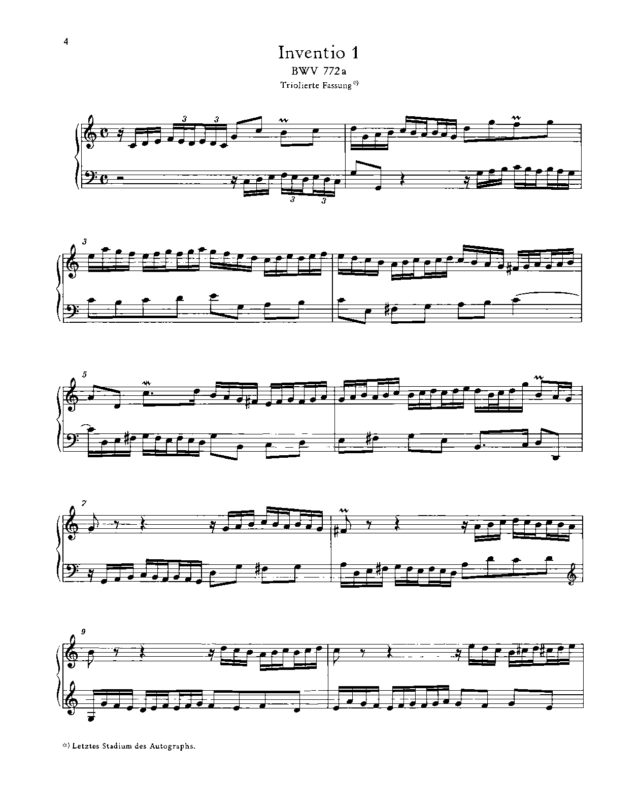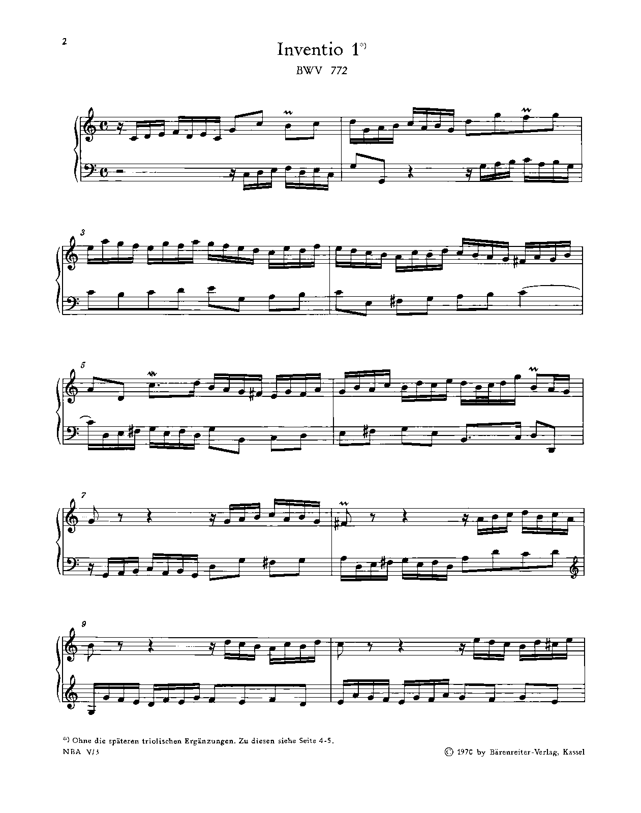 Misc. Notes It is intended to emphasize the polyphonic structure by distinguishing upper (BWV 772a) and lower (BWV 772) voice. For easier reading the note values were doubled.