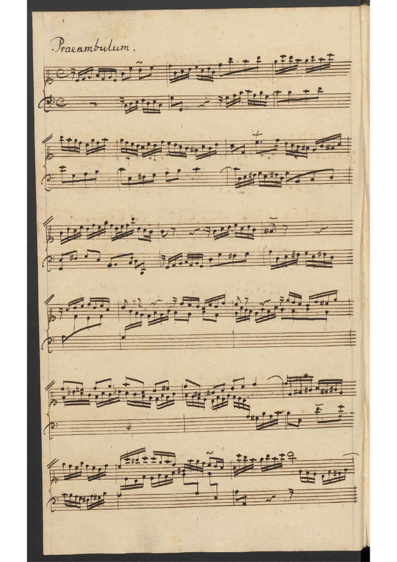 Misc. Notes 600 dpi. Page size is 10.00 x 12.688 inches. Part of the Klavierbüchlein für Wilhelm Friedemann Bach (No.32). The "Præambulum" is an alternate name to the "Invention" specific to the W.F. Bach Piano Book Collection.