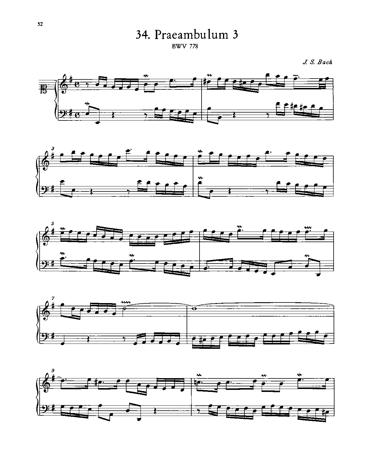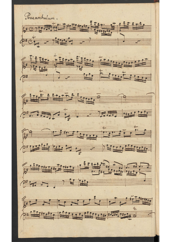 Misc. Notes 600 dpi. Page size is 10.00 x 12.688 inches. Part of the Klavierbüchlein für Wilhelm Friedemann Bach (No.34). The "Præambulum" is an alternate name to the "Invention" specific to the W.F. Bach Piano Book Collection.