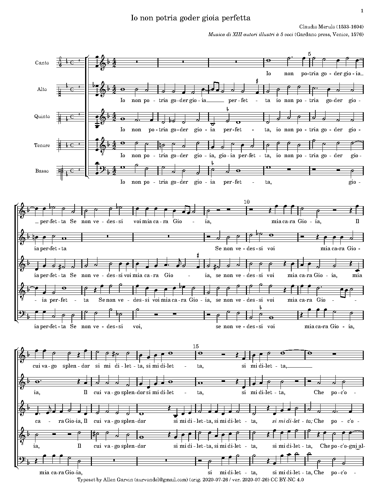 Io non potria goder gioia perfetta (Merulo, Claudio)
