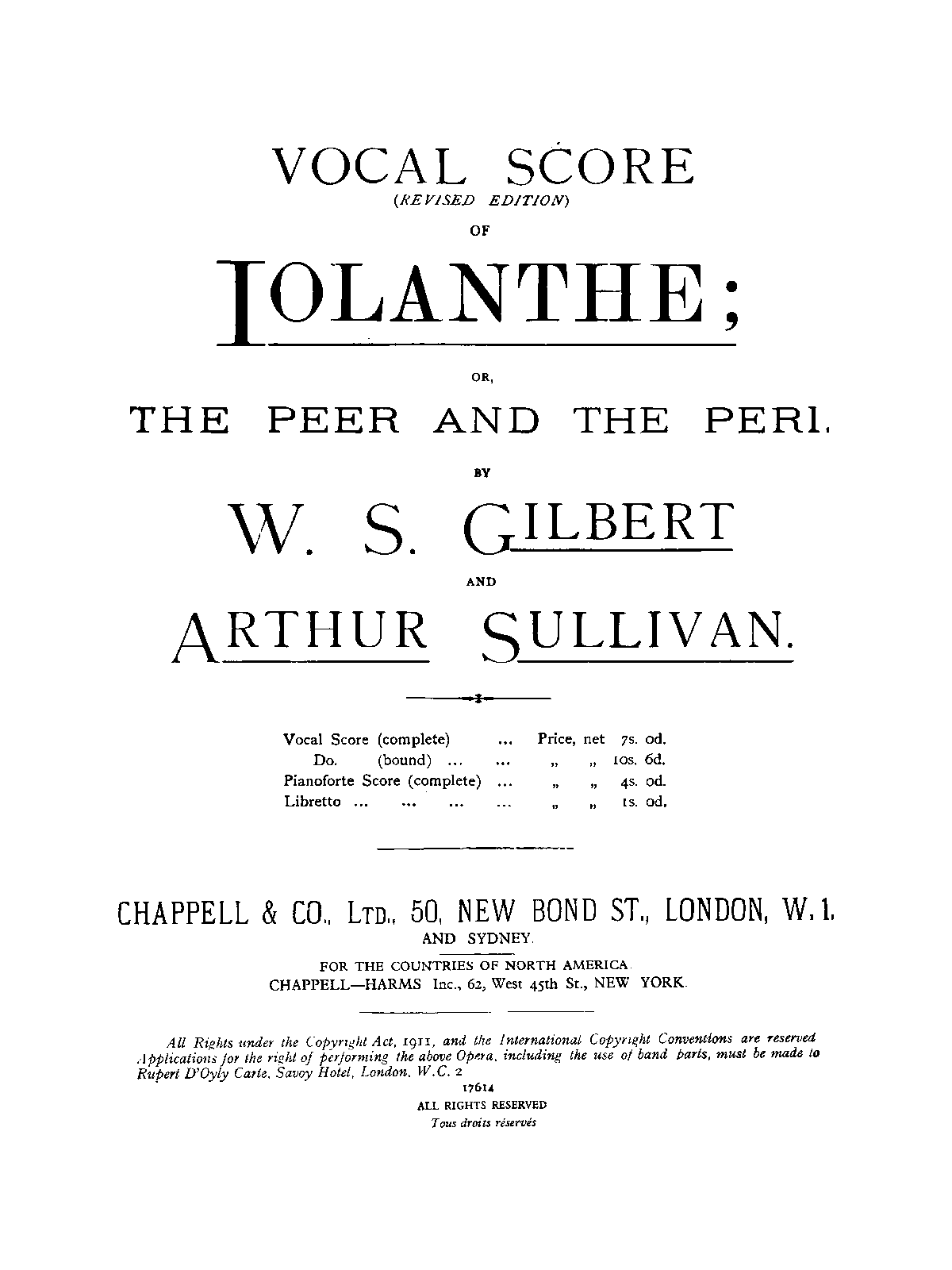 アイオランセ; Sullivan, Arthur, 1842-1900. Peer and the peri; Sullivan, Arthur, 1842-1900. Prince and the peri; Sullivan, Arthur, 1842-1900. Iolanthe, or, The peer and the peri