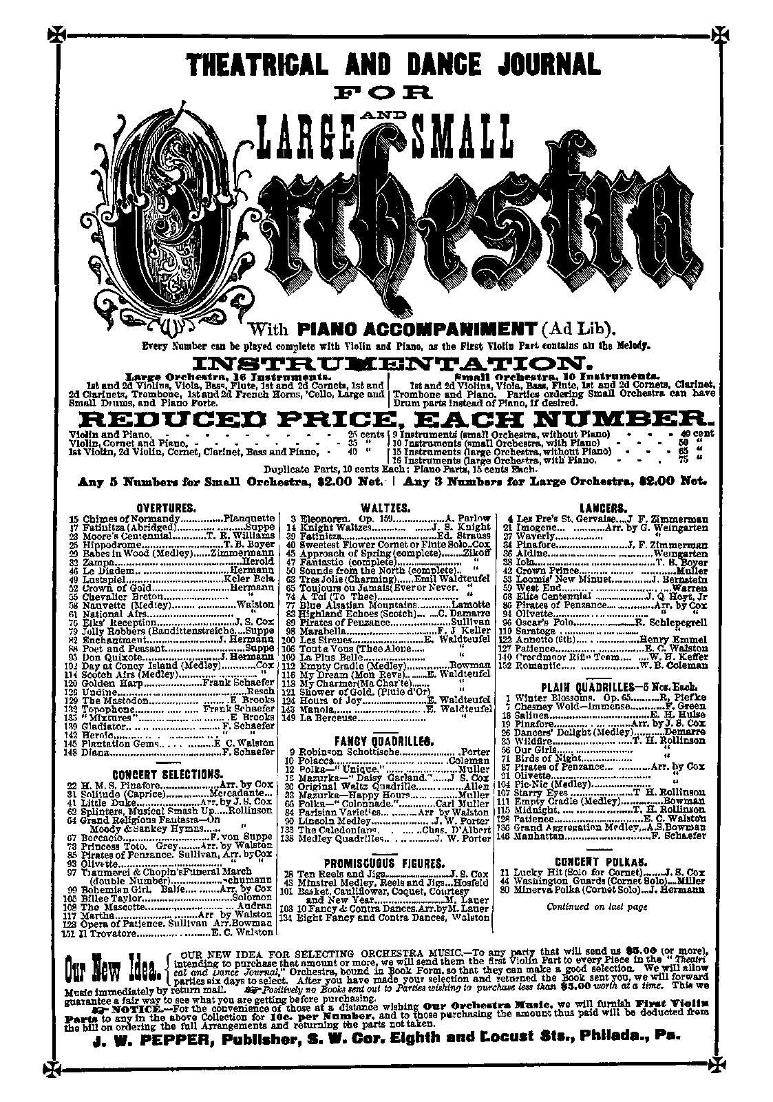 2 horns, 2 cornets, 2 trombones timpani, triangle, snare drum, bass drum, cymbals, strings