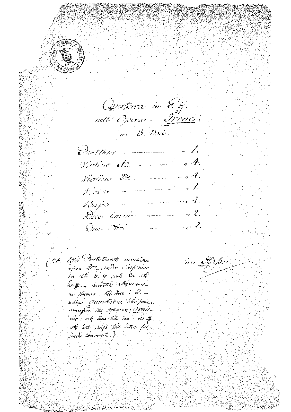 Misc. Notes vl 1, vl 2, vla, bc, ob 1, ob 2, cor 1, cor 2