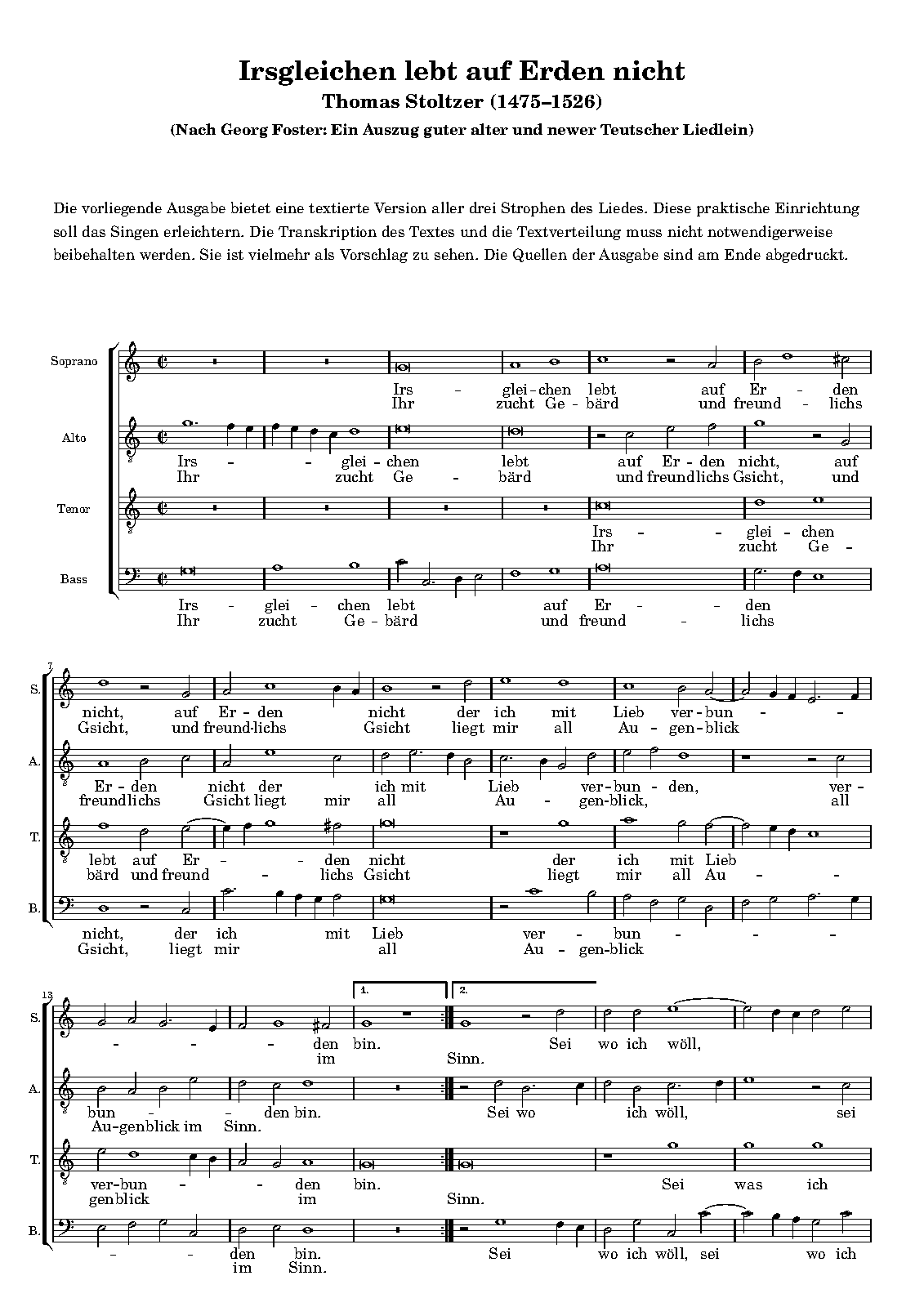 | Alternative. Title | Irsgleichen lebt auff erden nicht |
