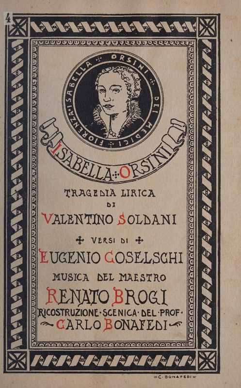 | Alternative. Title | Isabella Orsini; tragedia lirica in 4 atti. Riduzione scenica di Valentino Soldani da F. D. Guerrazzi. Versi di Eugenio Coselschi. |