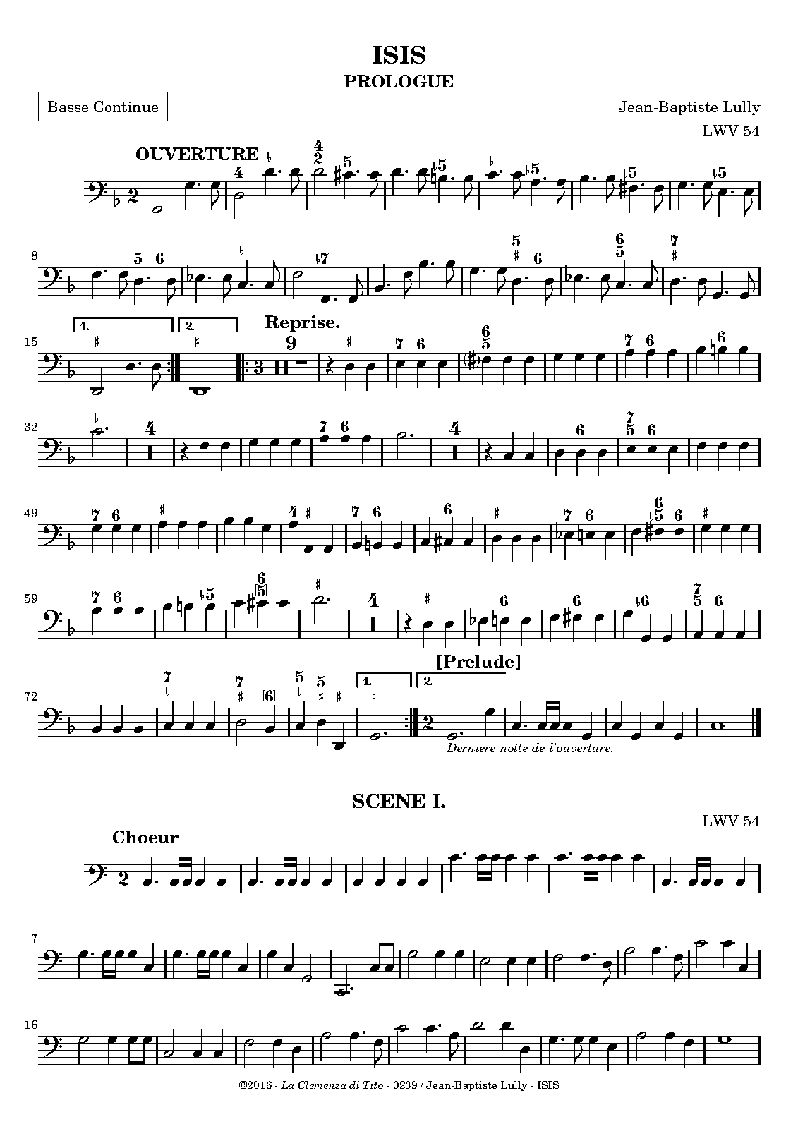 solo voices, Chœur : Sol 2, Ut 3, Ut 4, Fa 4 (prologue) . - Chœur : Ut 1, Ut 3, Ut 4, Fa 4 (tragédie). - Orchestre : Sol 1, Ut 1, Ut 2, Ut 3, Fa 4. - Mentions d'instrumentation sous la musique : trompettes, violons