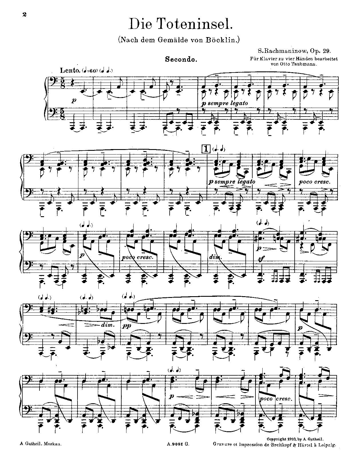 Moscow: A. Gutheil, 1910. Plate A. 9081 G.
