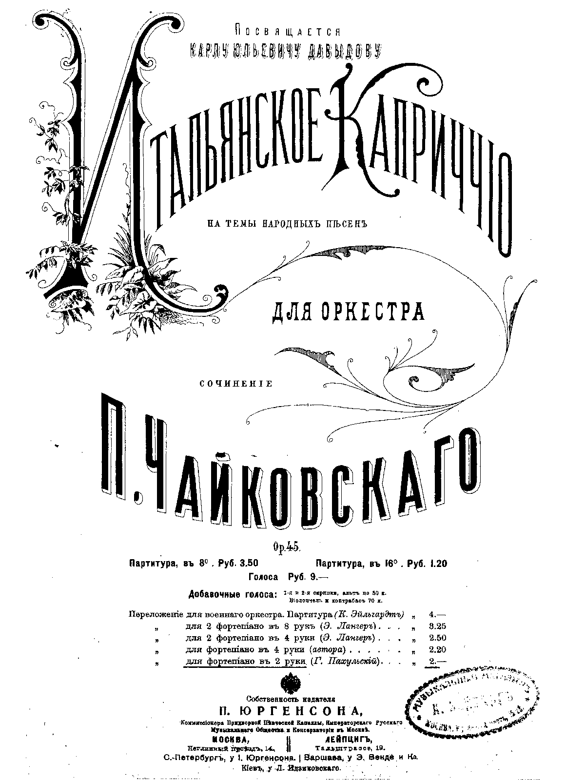 | Alternative. Title | Итальяанское каприччио (Italyanskoe kaprichchio), Capriccio italien |
