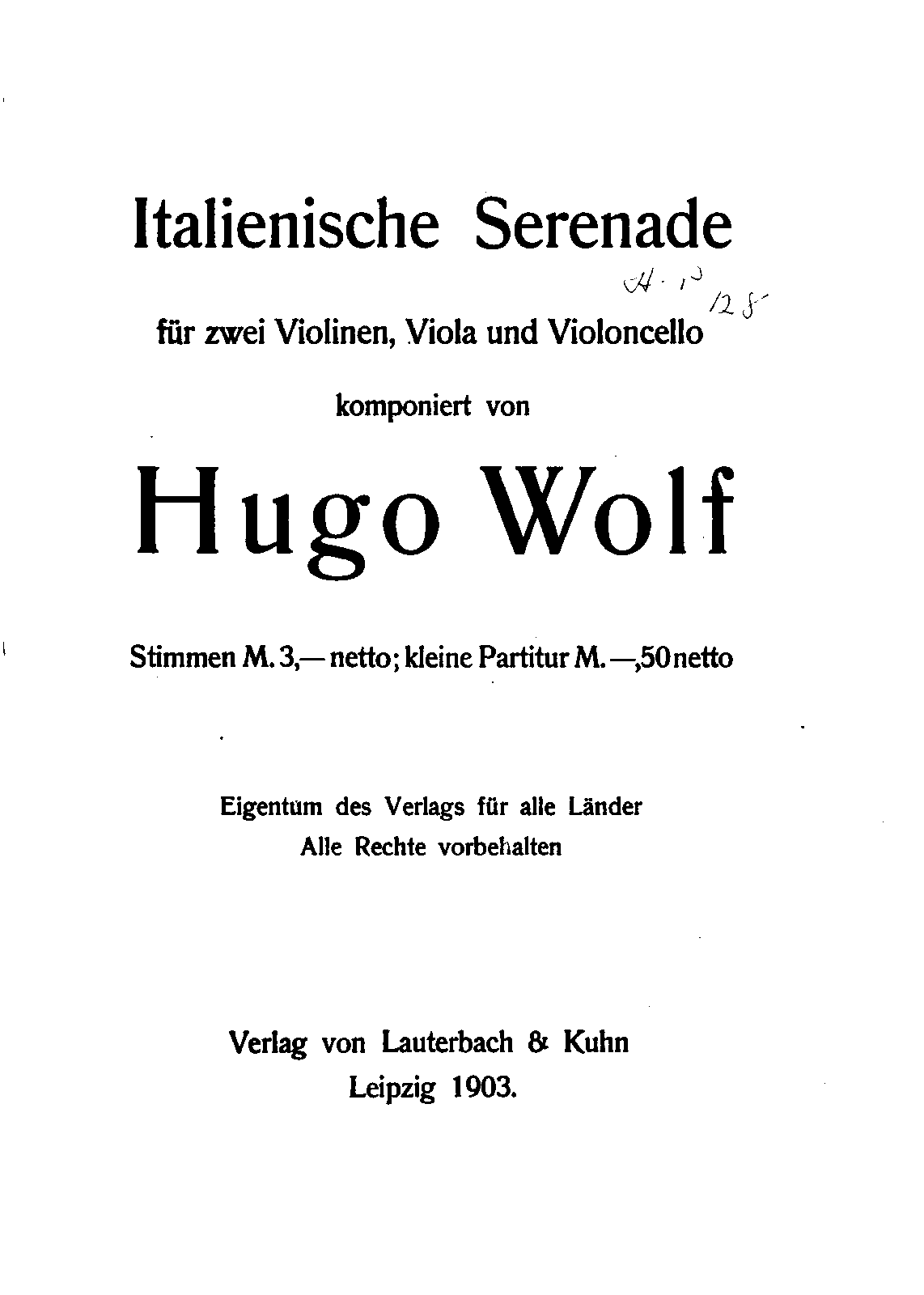 Publisher. Info. Leipzig: Lauterbach & Kuhn, 1903. Plate L. & K. 154.