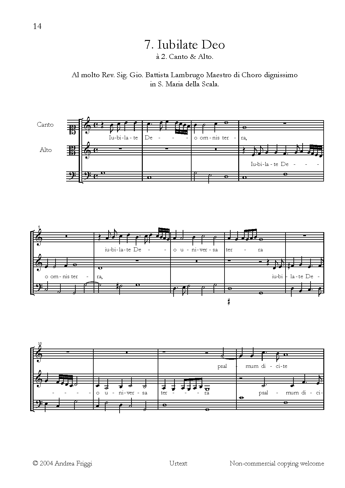 | Dedication | Al molto Rev. Sig. Gio. Battista Lambrugo Maestro di Choro dignissimo in S. Maria della Scala |