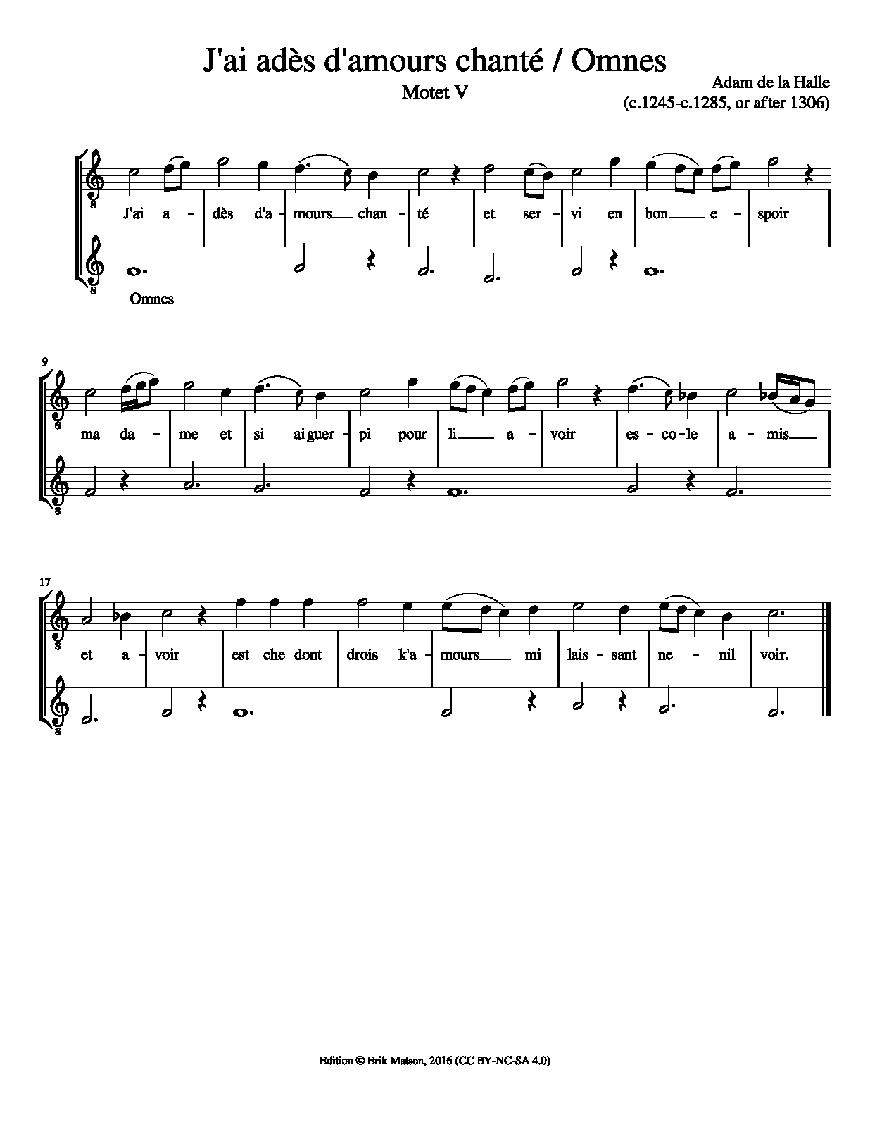 | Work Title | J'ai adès d'amours chanté / Omnes |